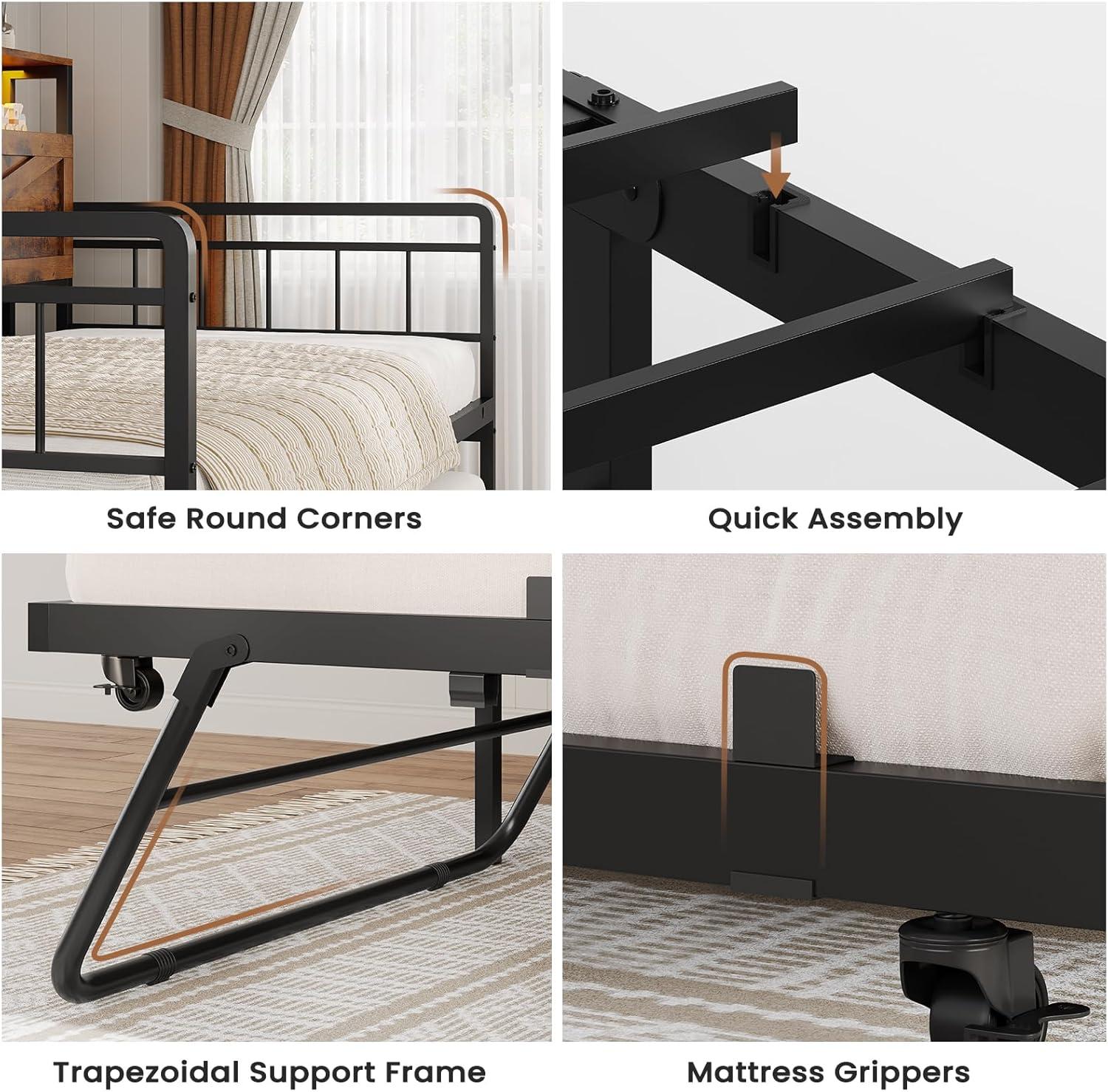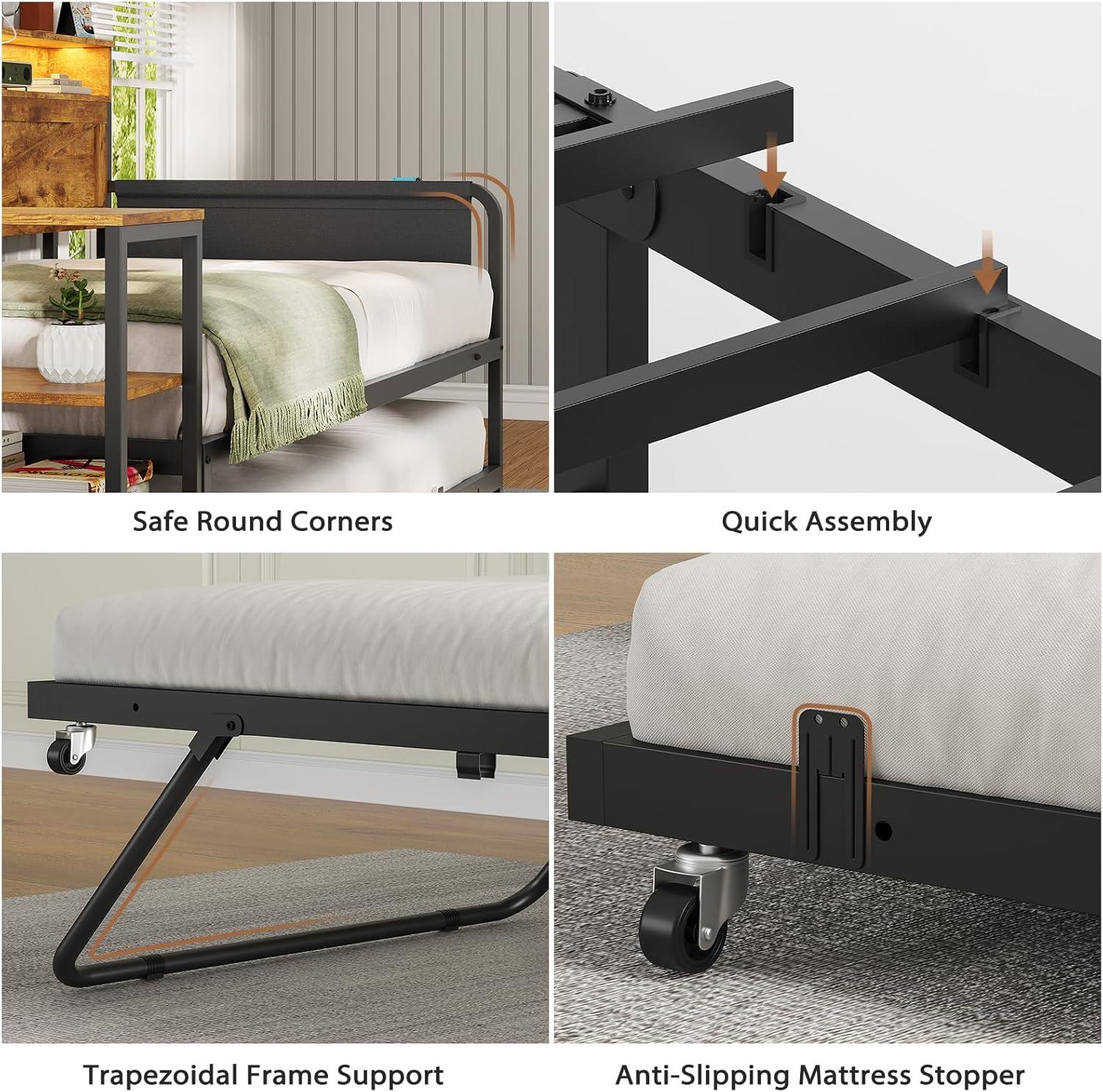 【2-Tier Headboard with Charging Station】This day bed frame twin with bookcase headboard features a 2-tier storage shelf and five open storage cubes providing you large storage space to reach commonly used items. The embedded charging station includes 2 AC outlets, 1 USB port and 1 fast charging type-C to fully meet your charging needs. You can lounge on the daybed frame and enjoy your leisure time without looking around for power sources. The charging station meets ETL certification standards.