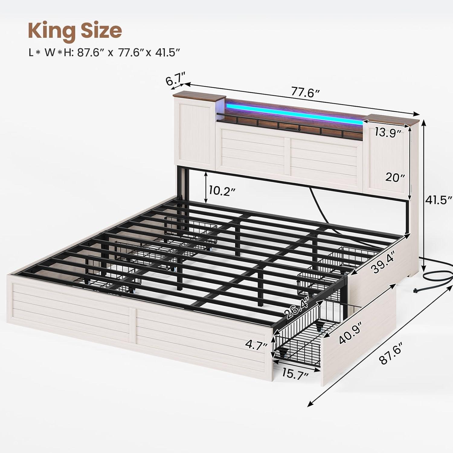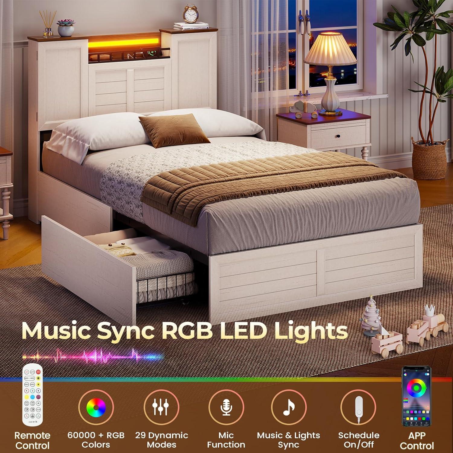 【Music Sync RGB LED Lights】Transform your bedroom into a dynamic sanctuary with premium RGB LED lighting that goes beyond ambiance! The sleek, built-in light strip offers 16 million+ color options and multiple brightness levels, controlled effortlessly via the included remote or phone app. Advanced sound sensors pick up music rhythms, making colors pulse and shift in real-time, perfect for movie nights, workouts, or unwinding.