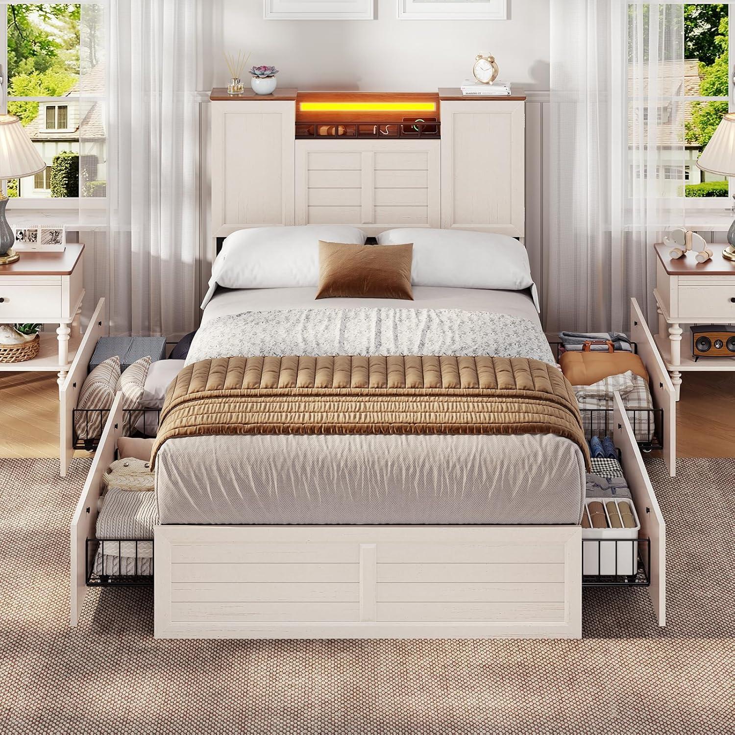 【4 Large Storage Drawers】Maximize every inch of your bedroom with 4 large-capacity under-bed drawers designed for effortless organization! Each deep, sliding drawer glides smoothly on 4 wheels, offering access to store bulky items. Ideal for tight spaces, dorm rooms, or family homes, these drawers keep clutter hidden yet within reach. No handle design maintains the bed’s rustic charm while blending seamlessly into any décor.