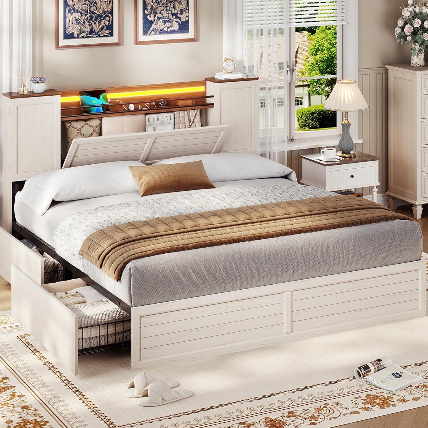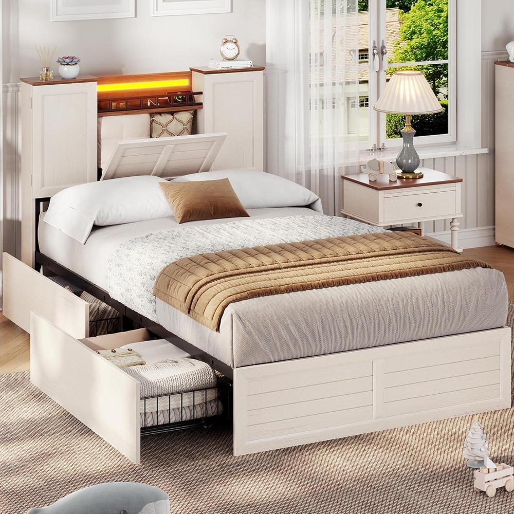 【Easy Assembly & Noise-Free】Designed for stress-free setup, this queen bed frame with storage arrives with pre-drilled holes, labeled parts, and a step-by-step visual guide. The reinforced wooden bed frame is secured with anti-shake bolts and padded with eva sponge, eliminating noise and rattles. The heavy duty queen bed frame with no box spring needed provide loading capacity up to 1000lbs, and stays sturdy and durable through years of use.