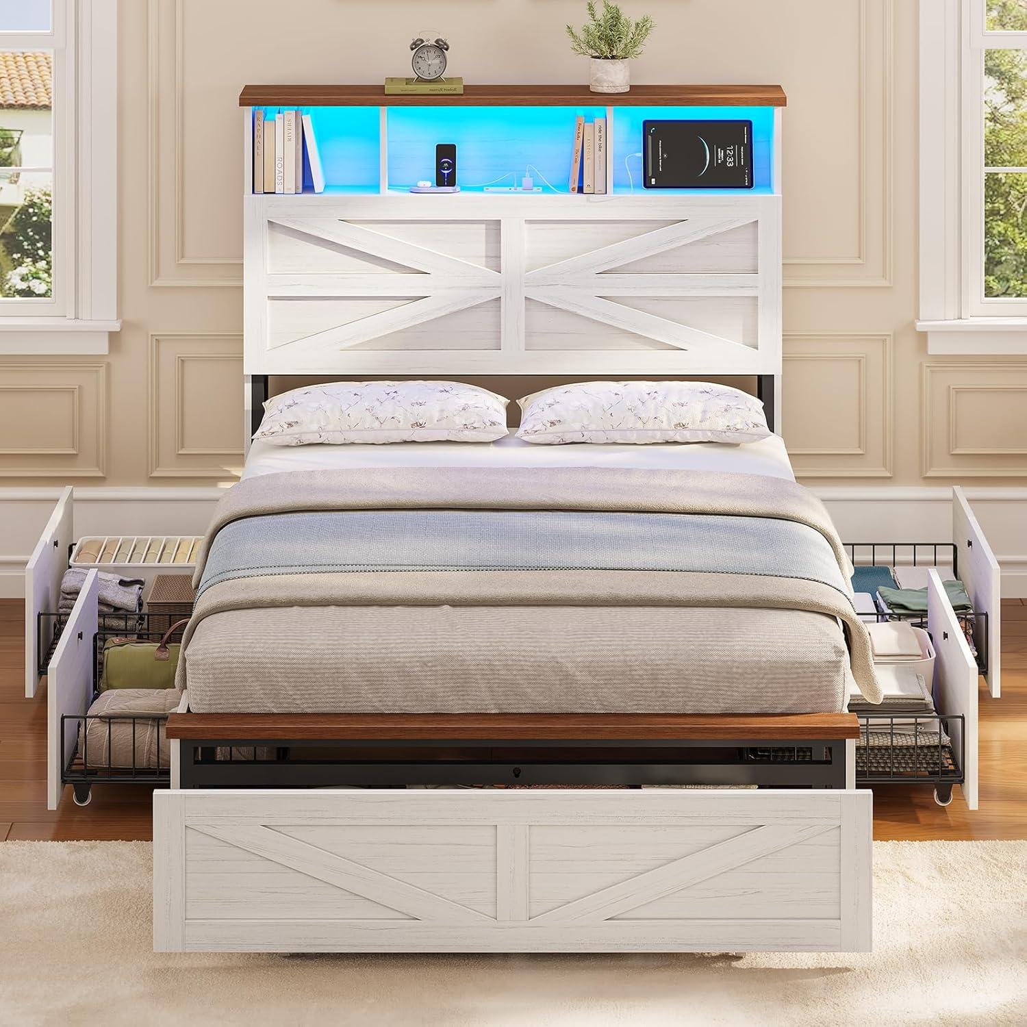 【6 Large Storage Drawers】For ample storage, the full size bed frame with storage includes six smooth-gliding drawers, two on each side and two at the foot, each fitted with four durable wheels for easy access. Each drawer also features a secure locking mechanism to prevent accidental opening, making them child-safe.