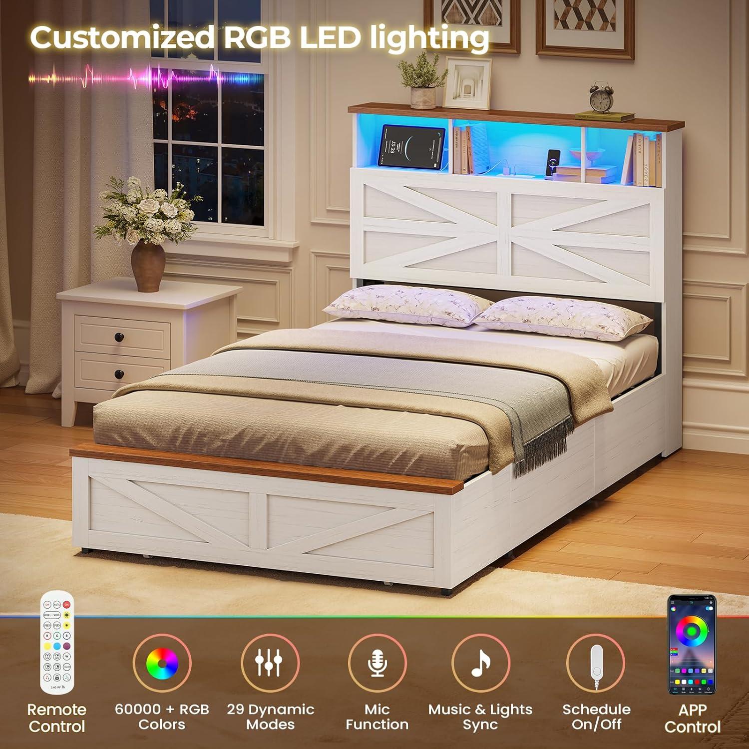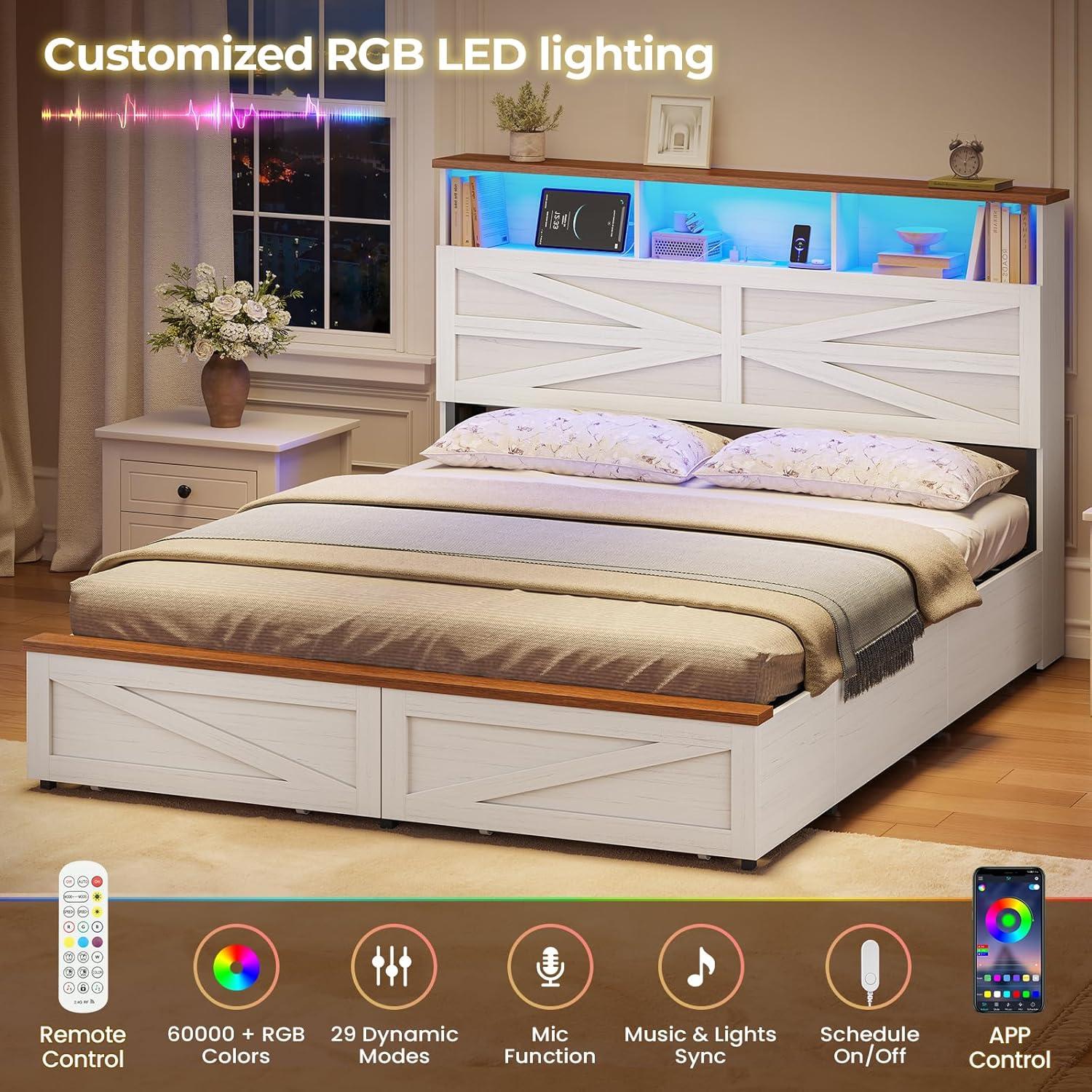 【Customized RGB LED Lighting】Set the perfect mood with the integrated LED light strip on the headboard. The full bed frame with led lights dynamically syncs to music rhythm, offering a variety of colors and modes by remote or app control to match your activity, whether you’re relaxing, reading, or entertaining.