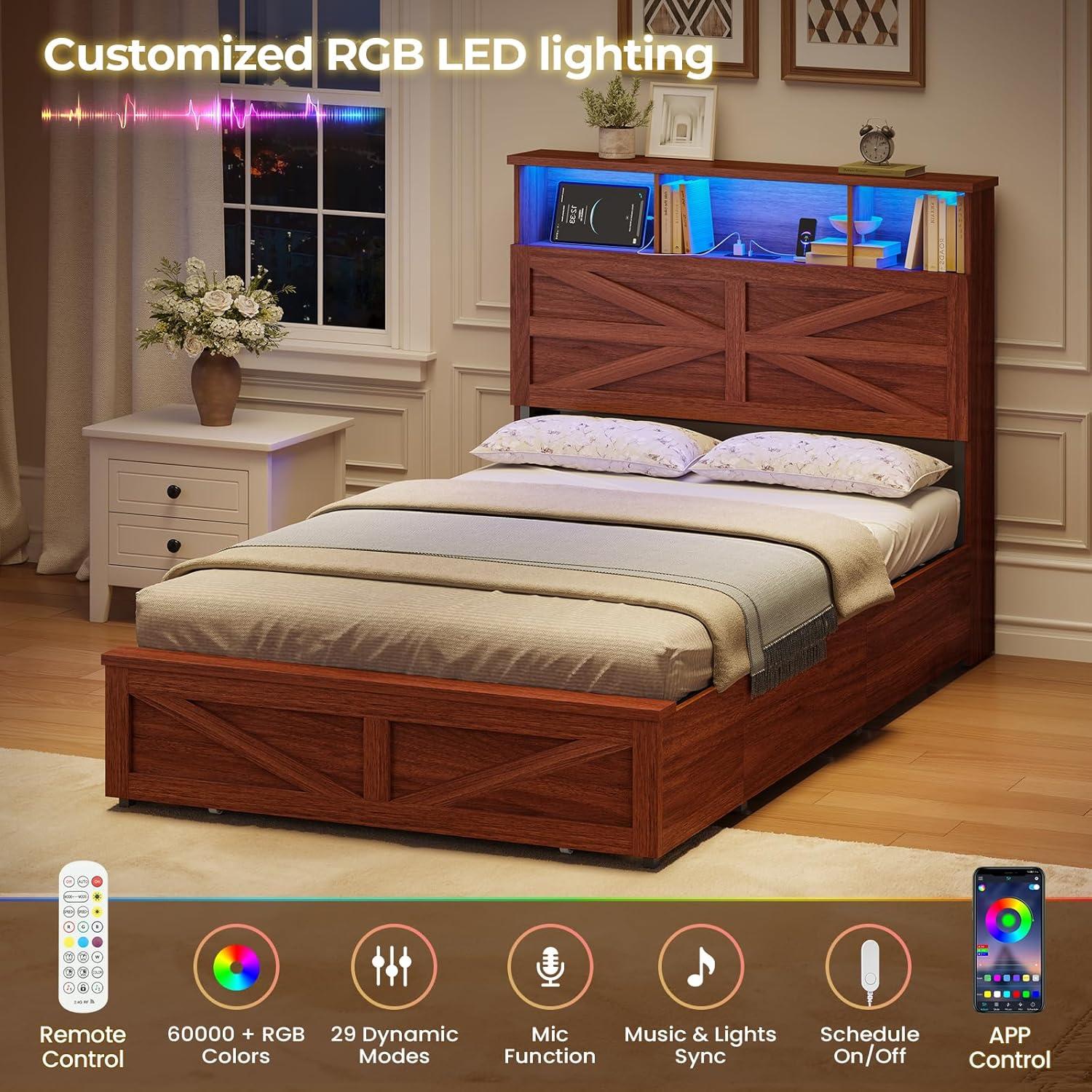 【Customized RGB LED Lighting】Set the perfect mood with the integrated LED light strip on the headboard. The full bed frame with led lights dynamically syncs to music rhythm, offering a variety of colors and modes by remote or app control to match your activity, whether you’re relaxing, reading, or entertaining.
