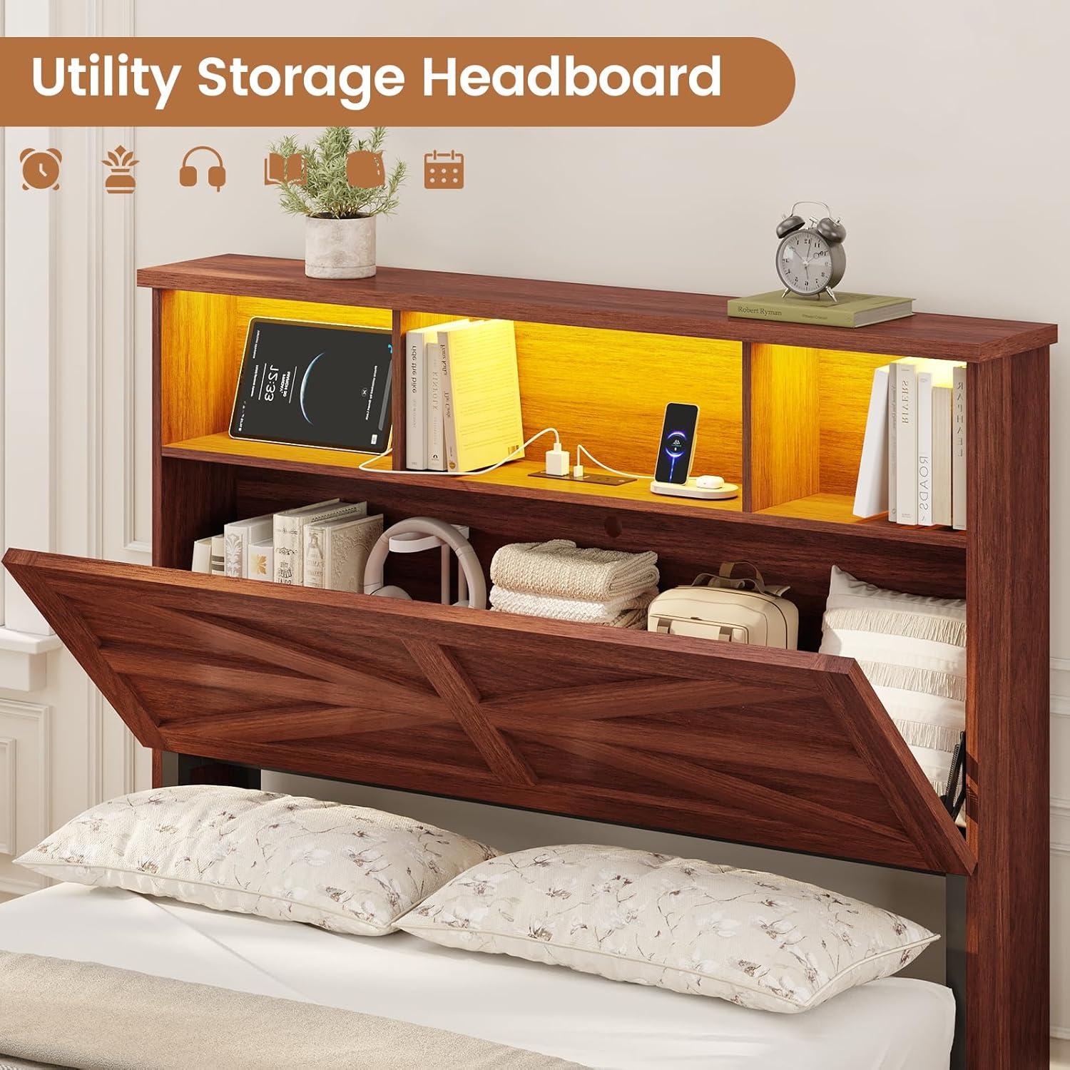 【Storage Headboard with Widened Shelf】Functionality is seamlessly integrated into the full bed frame with headboard. The generously widened headboard shelf offers a convenient spot for your nightly essentials, while its discreet hidden compartment provides additional storage for private items to keep your space tidy and organized.