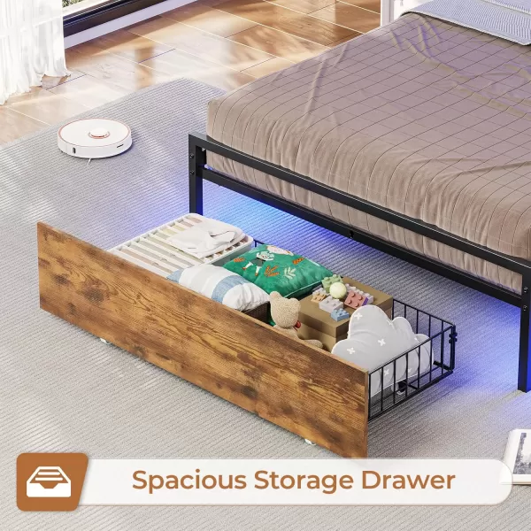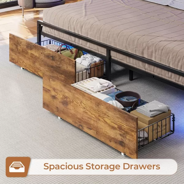 【Bed Frame with Sliding Drawers】Maximize storage space by adding two large steel drawers at the end of this king size bed frames with headboard. Effortlessly slide the drawers on wheels in and out for organization, and rest assured with the special lock design keeping your belongings secure. A under-bed height of 10.6’’ provide spacious storage space for boxes, shoes, off-season clothing and so on giving you a clean and organized sleeping atmosphere.