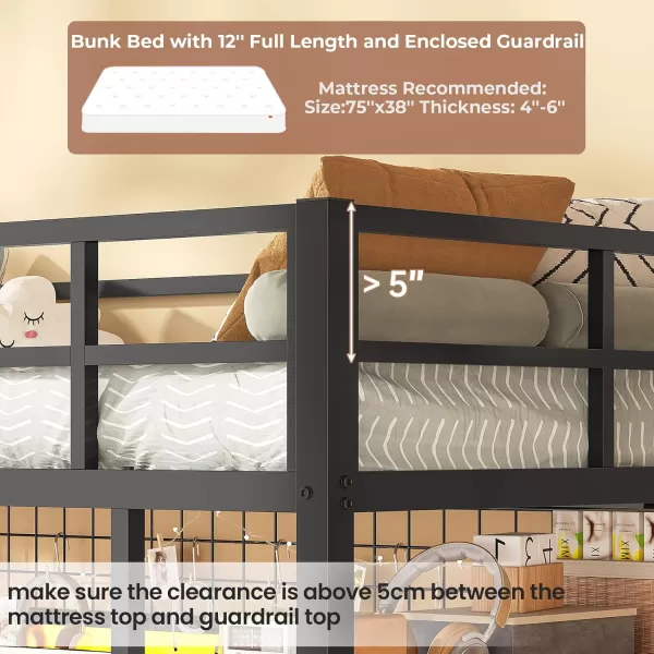 【Thoughtful Designs for Safety】The upper bunk bed is designed with a 12’’ full length and enclosed guardrail for not only improving the stability but also providing maximal security to protect your safety during use. Two set of anti-tipping device anchors the wall for added safety and no wobbling at all. Each metal tubes with anti-slip mats helps to increase friction and protect your floor from scratching.