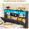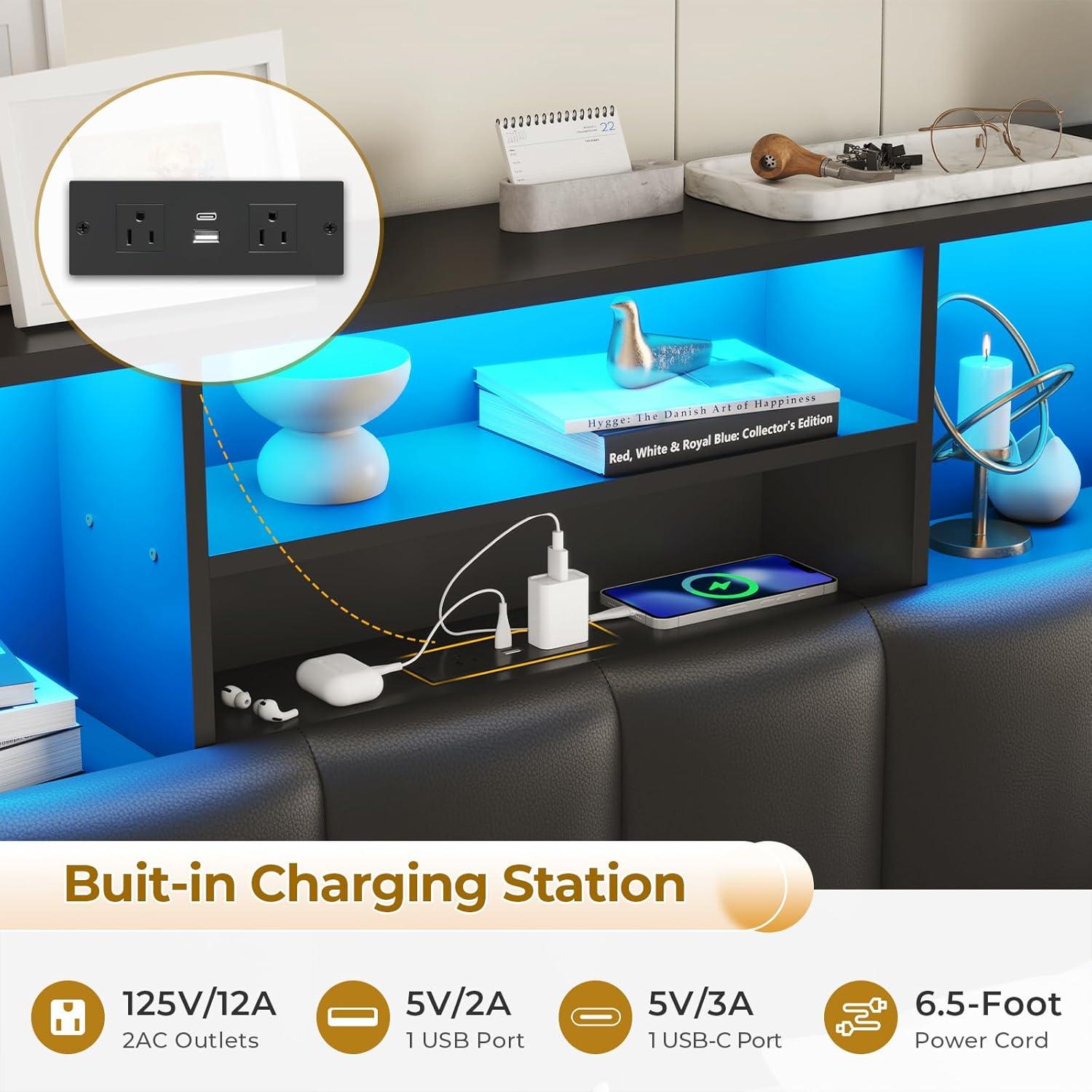 Versatile Storage Headboard–Designed with comfort and practicality in mind, this queen bed frame features a bookcase headboard with 4 open storage spaces and 3-tier shelves, ideal for keeping bedroom essentials within easy reach. Maximize your space with hidden storage compartment behind the leather backrest, it flips open and store privacy items to make your bedroom well organized.